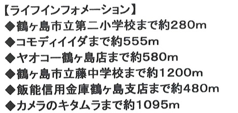 | 学区 | 小学校区:鶴ヶ島市立鶴ヶ島第二小学校 280m 中学校区:鶴ヶ島市立藤中学校 1,200m |