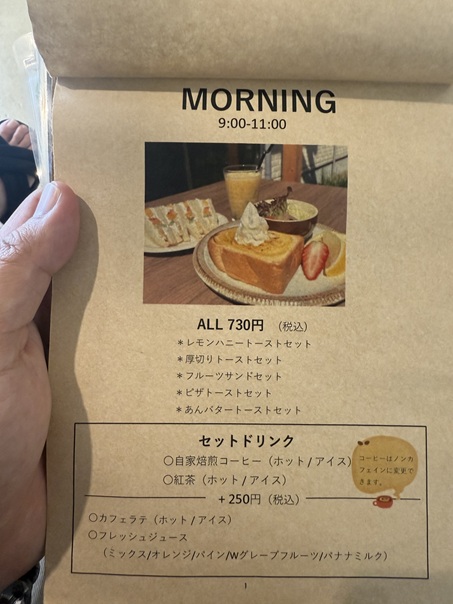 モーニング安!!!730円!!しかもどれも美味しそうで悩むな(~へ~ )。