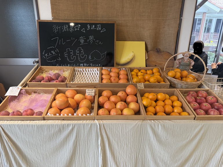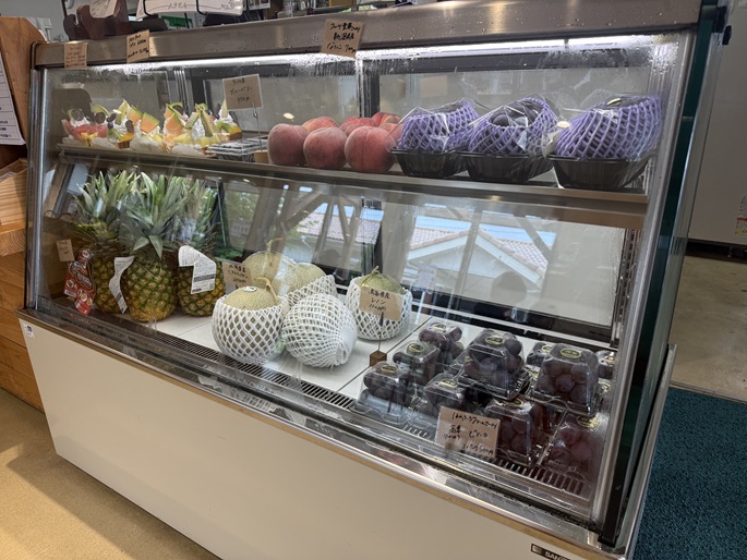 店内では沢山のフルーツやお持ち帰り用のケーキ等が売っております。