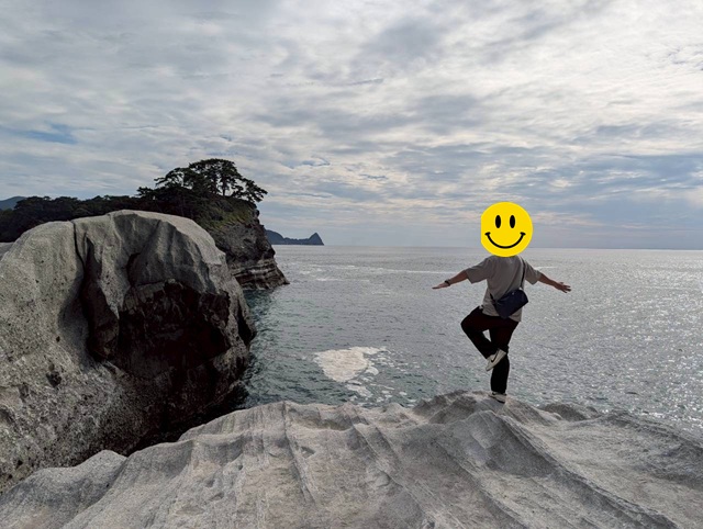 おぉ~~こっちはこっちで城ヶ崎海岸と違って岩の感じが全然違くてなんかよい感じ(=へ=●)。