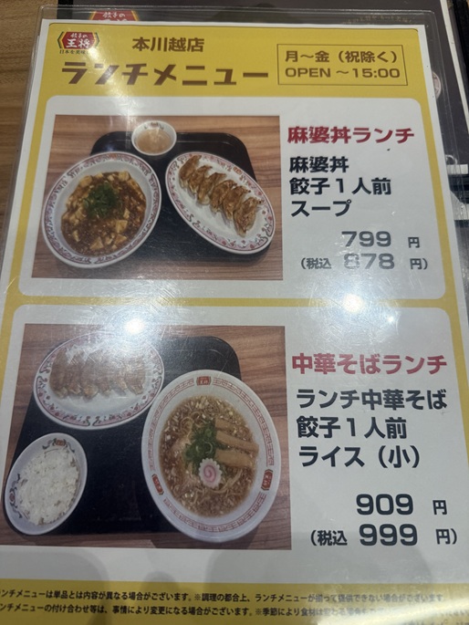 餃子の王将は、夜ご飯を食べに行くことはありますがお昼には初。