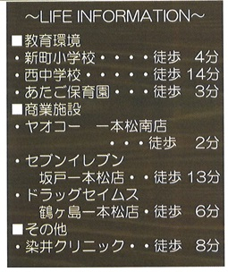 | 学区 | 鶴ヶ島市立新町小学校 230m/鶴ヶ島市立西中学校 950m |