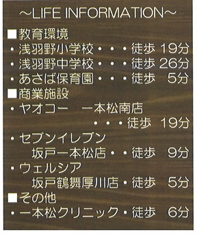 | 学区 | 坂戸市立浅羽野小学校 1,400m/坂戸市立浅羽野中学校 1,900m |