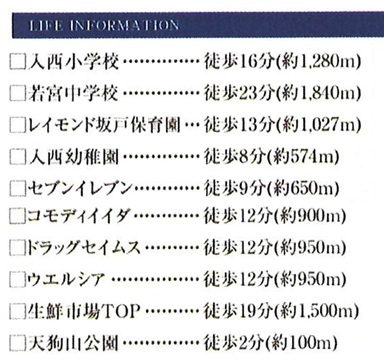 | 学区 | 坂戸市立入西小学校 1,280m/坂戸市立若宮中学校 1,840m |