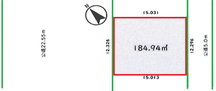 | 接道 | 北西 18m(幅員) 公道 12.5m(接面) 南東 5m(幅員) 公道 |