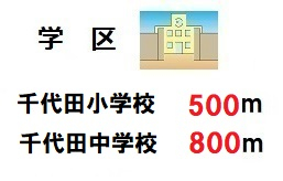 | 学区 | 坂戸市立千代田小学校 500m/坂戸市立千代田中学校 800m |