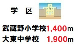 | 学区 | 川越市立武蔵野小学校 1,400m/川越市立大東中学校 1,900m |
