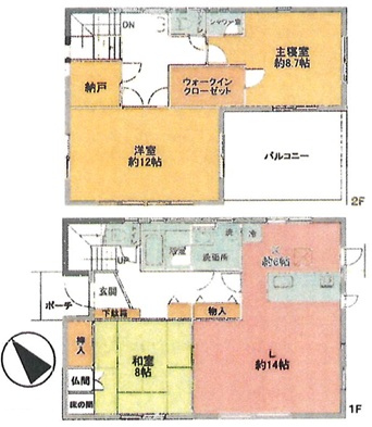 | 間取詳細 | (1F)LDK20.0、(1F)和8.0、(2F)洋8.75、(2F)洋12.0 |