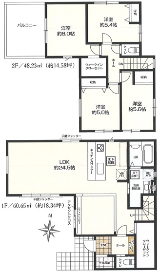 | 間取詳細 | (1F)LDK24.5、(2F)洋5.0、(2F)洋5.4、(2F)洋5.6、(2F)洋8.0 |