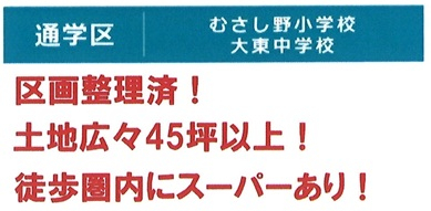 | 学区 | 川越市立武蔵野小学校 550m/川越市立大東中学校 1,700m |