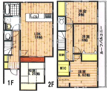 | 間取詳細 | (1F)LDK16.0、(1F)和5.25、(2F)洋6.0、(2F)洋6.0、(2F)洋6.62 |