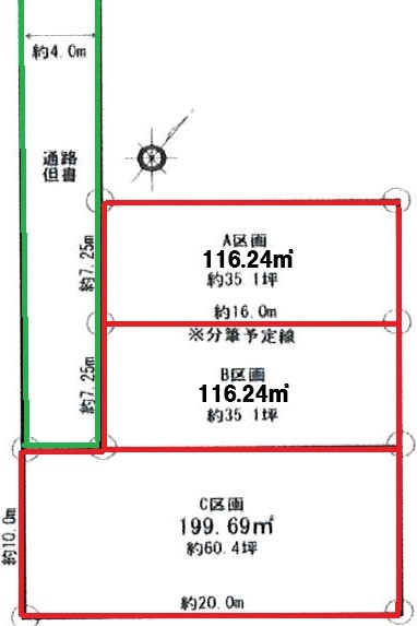 | 特色 | 建築条件なし、公営水道、公共本下水、都市ガス、確定測量済、司法書士(売主指定)、43条但し書き |