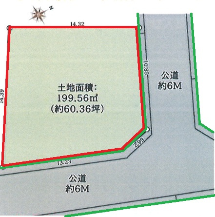 | 接道 | 北 6m(幅員) 公道 10.8m(接面) 東 6m(幅員) 公道 13.2m(接面) |