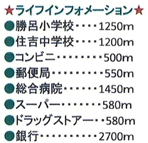 | 学区 | 坂戸市立勝呂小学校 1,250m/坂戸市立住吉中学校 1,200m |