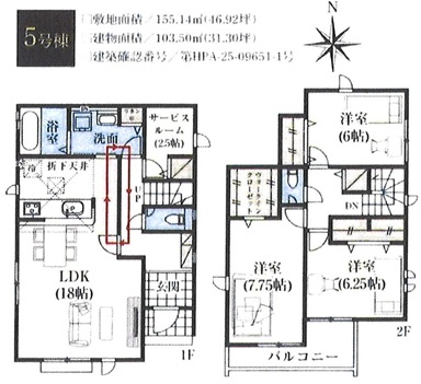 | 間取詳細 | (1F)LDK18.0、(2F)洋6.0、(2F)洋6.25、(2F)洋7.75 |