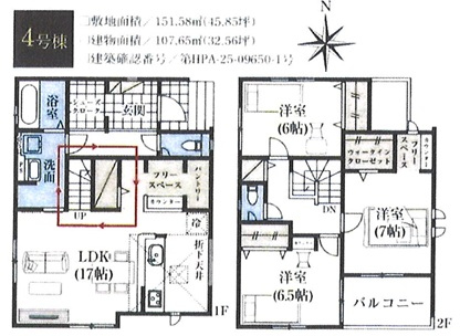 | 間取詳細 | (1F)LDK17.0、(2F)洋6.0、(2F)洋6.5、(2F)洋7.0 |