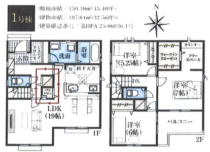 | 間取詳細 | (1F)LDK19.0、(2F)洋5.25、(2F)洋6.0、(2F)洋7.0 |