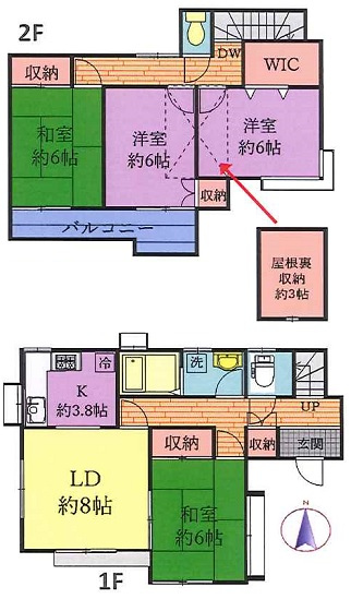 | 間取詳細 | (1F)LD8.0、(1F)K3.8、(1F)和6.0、(2F)和6.0、(2F)洋6.0、(2F)洋6.0 |