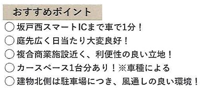 | 交通 | 東武東上線 坂戸駅まで 徒歩23分 |
