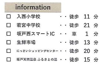 | 学区 | 坂戸市立入西小学校 850m/坂戸市立若宮中学校 1,700m |