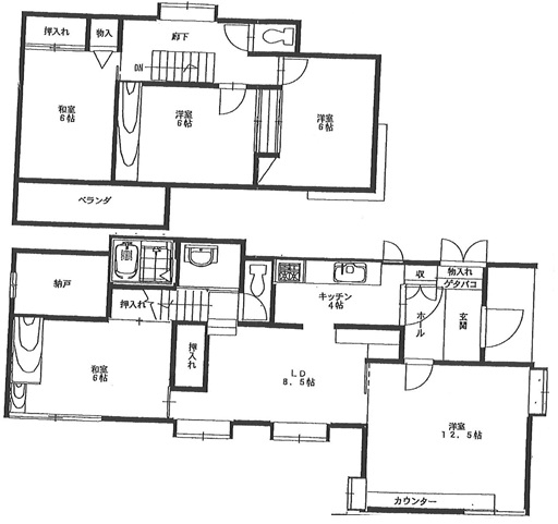 | 間取詳細 | (1F)LDK12.5、(1F)和6.0、(1F)納戸、(1F)洋12.5、(2F)和6.0、(2F)洋6.0、(2F)洋6.0 |