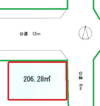 | 接道 | 北 12m(幅員) 公道 東 6m(幅員) 公道 |