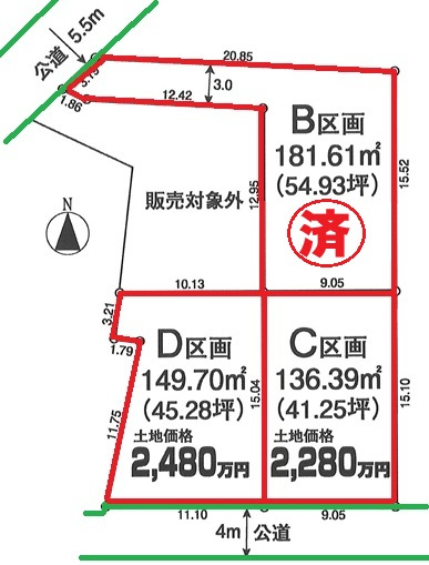 | 特色 | 建築条件なし、南道路、公営水道、公共本下水、都市ガス、更地 |