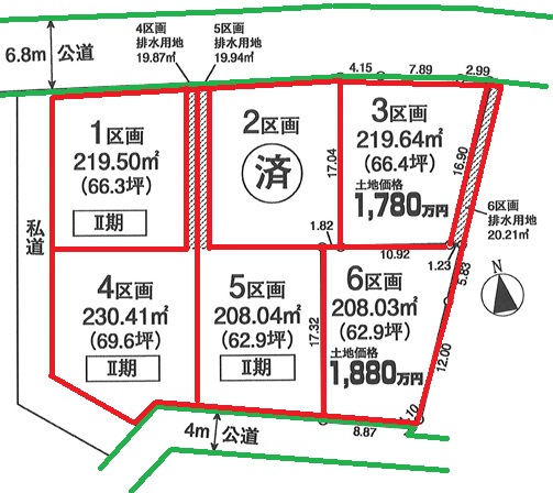 | 特色 | 建築条件なし、調整(線引き前宅地)、南道路、公営水道、個別浄化槽、都市ガス、開発許可が必要です(売主負担)、完成宅地での引渡し |