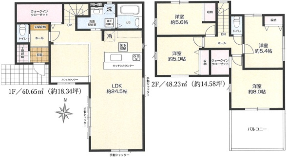 | 間取詳細 | (1F)LDK24.5、(2F)洋5.0、(2F)洋5.6、(2F)洋5.4、(2F)洋8.0 |