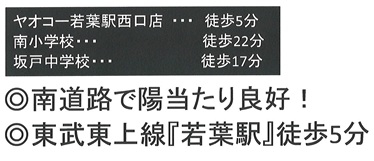 | 交通 | 東武東上線 若葉駅まで 徒歩5分 |