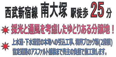 | 交通 | 西武新宿線 南大塚まで 徒歩25分 |