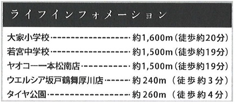 | 学区 | 坂戸市立大家小学校 1,600m/坂戸市立若宮中学校 1,500m |