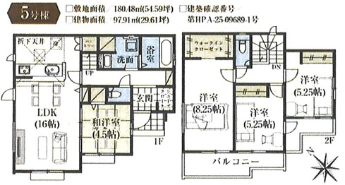 | 間取詳細 | (1F)LDK16.0、(1F)和4.5、(2F)洋5.25、(2F)洋5.25、(2F)洋8.25 |