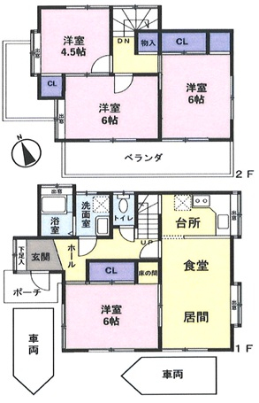 | 間取詳細 | (1F)LDK、(1F)洋6.0、(2F)洋4.5、(2F)洋6.0、(2F)洋6.0 |
