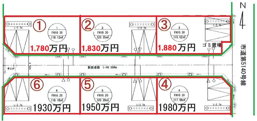 | 特色 | 建築条件なし、公営水道、公共本下水、都市ガス、造成工事完了後引渡し、水道加入金(246,400円/買主負担)、都市計画道路有 |