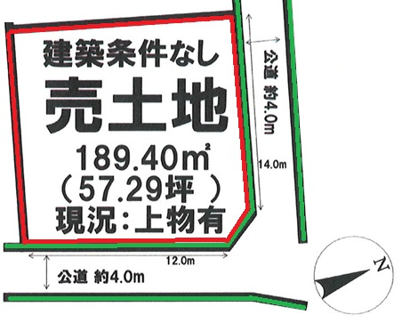 | 接道 | 東 4m(幅員) 公道 12m(接面) 北 4m(幅員) 公道 14m(接面) |