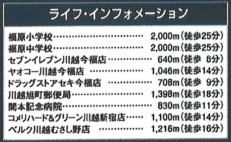 | 学区 | 川越市立福原小学校 2,000m/川越市立福原中学校 2,000m |