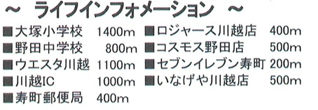 | 学区 | 川越市立大塚小学校 1,400m/川越市立野田中学校 800m |