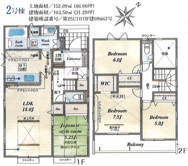 | 間取詳細 | (1F)LDK18.0、(1F)和5.25、(2F)洋5.0、(2F)洋6.0、(2F)洋7.5 |