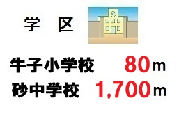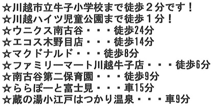 | 学区 | 川越市立牛子小学校 80m/川越市立砂中学校 1,700m |