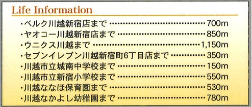 | 学区 | 川越市立新宿小学校 550m/川越市立城南中学校 150m |