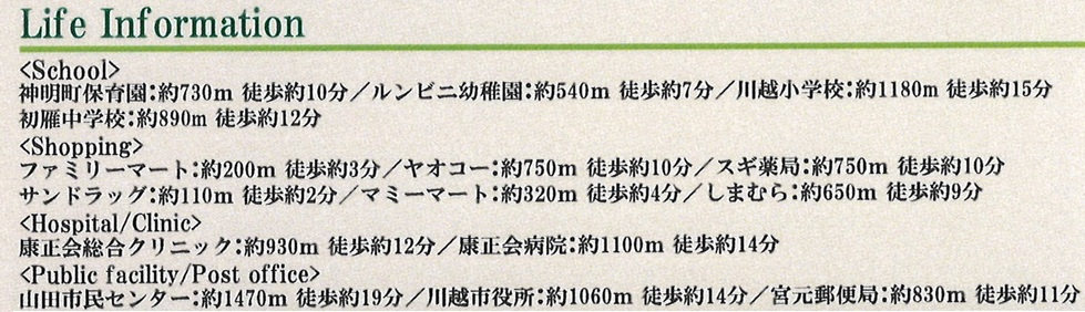 | 学区 | 川越市立川越小学校 1,180m/川越市立初雁中学校 890m |
