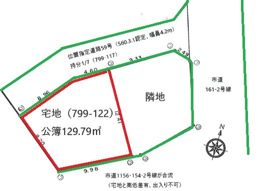 | 接道 | 北西 4.2m(幅員) 公道 13.5m(接面) |