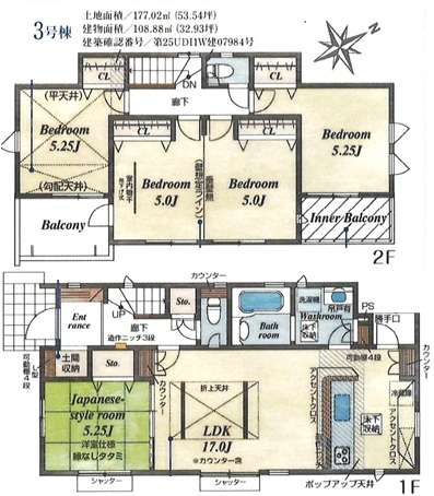 | 間取詳細 | (1F)LDK17.0、(1F)和5.25、(2F)洋5.25、(2F)洋5.25、(2F)洋5.0、(2F)洋5.0 |