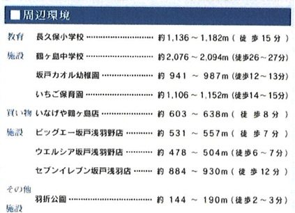 | 学区 | 鶴ヶ島市立長久保小学校 1,182m/鶴ヶ島市立鶴ヶ島中学校 2,094m |