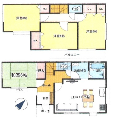 | 間取詳細 | (1F)LDK11.75、(1F)和6.0、(2F)洋6.0、(2F)洋6.0、(2F)洋6.0 |