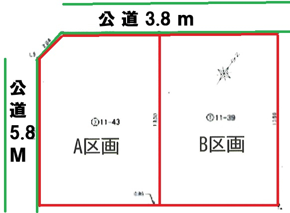 | 接道 | 北西 3.8m(幅員) 42条2項道路 |