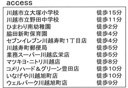 | 学区 | 川越市立大塚小学校 1,000m/川越市立野田中学校 800m |
