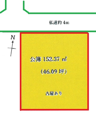 | 特色 | 建築条件なし、調整(既存宅地)、公営水道、個別浄化槽、プロパンガス、上物有、現況渡し、司法書士(売主指定)、43条許可が必要です |