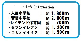| 学区 | 小学校区:坂戸市立入西小学校 1,800m 中学校区:坂戸市立若宮中学校 2,000m |